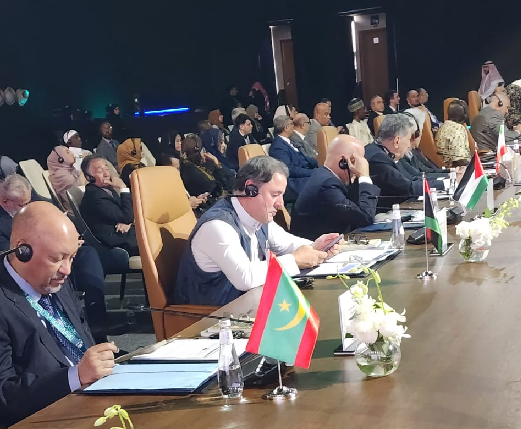 وكانت هذه مناسبة مكنت السيد الرئيس بتذكير مخاطبيه بما تمتلكه بلادنا من مقدرات هائلة في المجالات المختلفة كالمعادن والطاقة والصيد البحري والزراعة والثروة الحيوانية والخدمات وغيرها، وآفاقها الواعدة، وما تنعم به من أمن واستقرار تحت القيادة الرشيدة لفخامة رئيس الجمهورية السيد محمد ولد الشيخ الغزواني، في جو من سيادة القانون وإشاعة العدل والتآزر والإنصاف، مما يوفر الظروف الملائمة والمناخ المناسب لاستقطاب الاستثمارات.