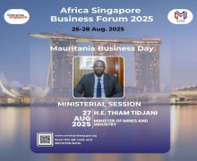 من المنتظر ان يقدم وزير المعادن والصناعة الموريتاني، اتيجاني اتيام، عرضا في الجلسة الوزارية ليوم الأعمال الموريتاني، التي تُنظمها شركة "مين&مين" ومؤسسة سنغافورة، في إطار منتدى الأعمال الأفريقي بسنغافورة 2025، والمقرر عقده في الفترة من 26 إلى 28 أغسطس 2025، في فندق جراند كوبثورن ووترفرونت في س