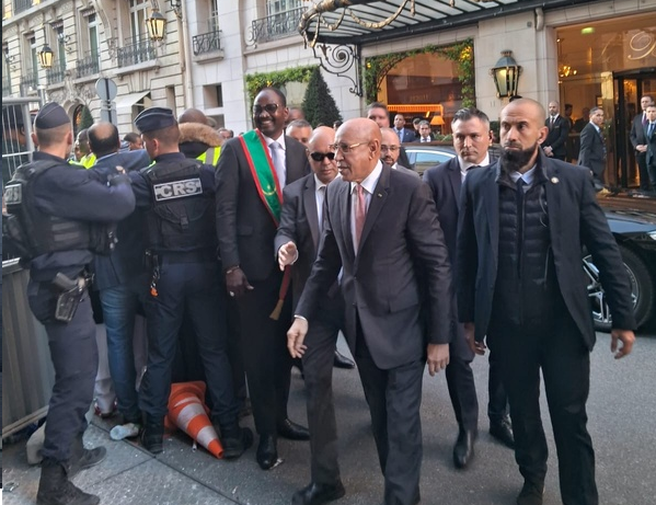 ALHAMDOOLILLAH, Tout en invoquant, en prières silencieuses et intenses, notre créateur ALLAH azze we jelle, afin que le Président MOHAMED CHEÏKH GHAZWANY ne quitte pas Paris avant que je puisse le rencontrer à nouveau, j’ai été divinement exaucé, un miracle se produisit... La dernière soirée, ce samedi soir-là, j’étais à table, en solitaire, au si chic restaurant de l’hôtel BRISTOL, pas loin de l’entrée de cet espace et voilà que le Président apparaît accompagné de la Première DAME, et entouré de la « sécurité »française mauritanienne, je me lève donc pour « le saluer »et voilà qu’à une surprenante vitesse inouïe, je me suis retrouvé encerclé par ses gorilles et d’un signe du Président, ils se sont éloignés de ma modeste personne, on se serre la main et j’ose lui dire, vite, avec assurance, « Saheb L’vakhama,Monsieur le Président, très bon voyage de retour à notre pays et merci infiniment d’avoir redoré le blason de toute notre Mauritanie par votre sublime visite d’état de haute facture à la France et à son président ami, merci Monsieur le Président, Chookrann, j’en ai le cœur à mille et un carats d’émotions et de fierté... »,la Grande DAME a subtilement vu et entendu mes paroles et ils s’éloignèrent ensembles avec leur nuée de garde-corps vers l’espace VIP où ils étaient attendus, mais avant de bouger, j’ai eu droit à un duo de sourires complices et approbateurs, en me laissant seul, « gérer »ce silence fracassant et divin qui en dit long, meublé par l’esprit d’une mission accomplie, presque impossible pour le commun des mortels avec un beau défi, à moi-même, bien relevé, ALHAMDOOLILLAH,qu’ils soient bénis,INCHAALLAH.. !