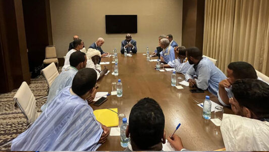 عقد وزير الشؤون الخارجية والتعاون الإفريقي والموريتانيين في الخارج، محمد سالم ولد مرزوك، على هامش زيارته الرسمية إلى جمهورية مالي، لقاءً مع ممثلي الجالية الموريتانية المقيمة في هذا البلد، وذلك بمقر إقامته في باماكو، بحضور أعضاء البعثة الدبلوماسية والوفد المرافق لمعاليه.