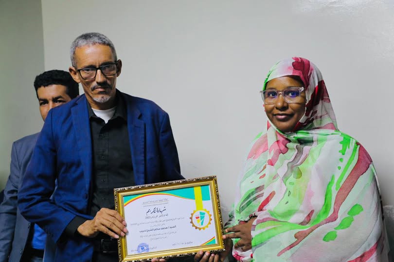 كرّمت الوكالة الوطنية لتنفيذ ومتابعة المشاريع (ANESP) صباح اليوم الثلاثاء 4 نوفمبر 2025 السيد/ محمد سالم الشيخ لحبيب بمناسبة اختياره العامل المتميز لشهر نوفمبر 2025، حيث قدّمت المديرة العامة الدكتورة:،"ميمونة بنت أحمد سالم" شهادة التكريم تقديراً لجهوده وإخلاصه في العمل.