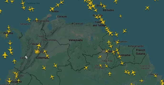 وكشفت صور حركة الطيران المدني عن فراغ لافت فوق المجال الجوي لفنزويلا، في وقت تتصاعد به التوقعات بشأن استعداد الولايات المتحدة لإطلاق مرحلة جديدة من عملياتها في فنزويلا خلال الأيام المقبلة.